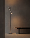Pivot Floor Lamp has a quiet sculptural presence; an uplighter at its core, with a shorter pivoting arm that responds intuitively to its surroundings. Designed to adapt, it transforms with a simple gesture: angled down beside a sofa for evening reading, directed across a wall to illuminate artwork, or turned toward a console to draw out the contours of an object. Crafted on a manual lathe, Pivot reflects a commitment to simplicity and precision. Two carefully balanced metal tubes intersect with effortless clarity, emphasising proportion and restraint. The raw tumbled aluminium finish, uncoated and honest, catches the light subtly, revealing the tool marks and nuances of its making. With its quiet confidence and mechanical elegance, Pivot invites interaction without demanding attention.